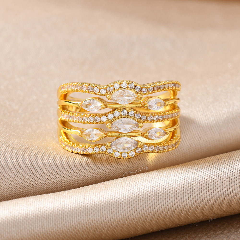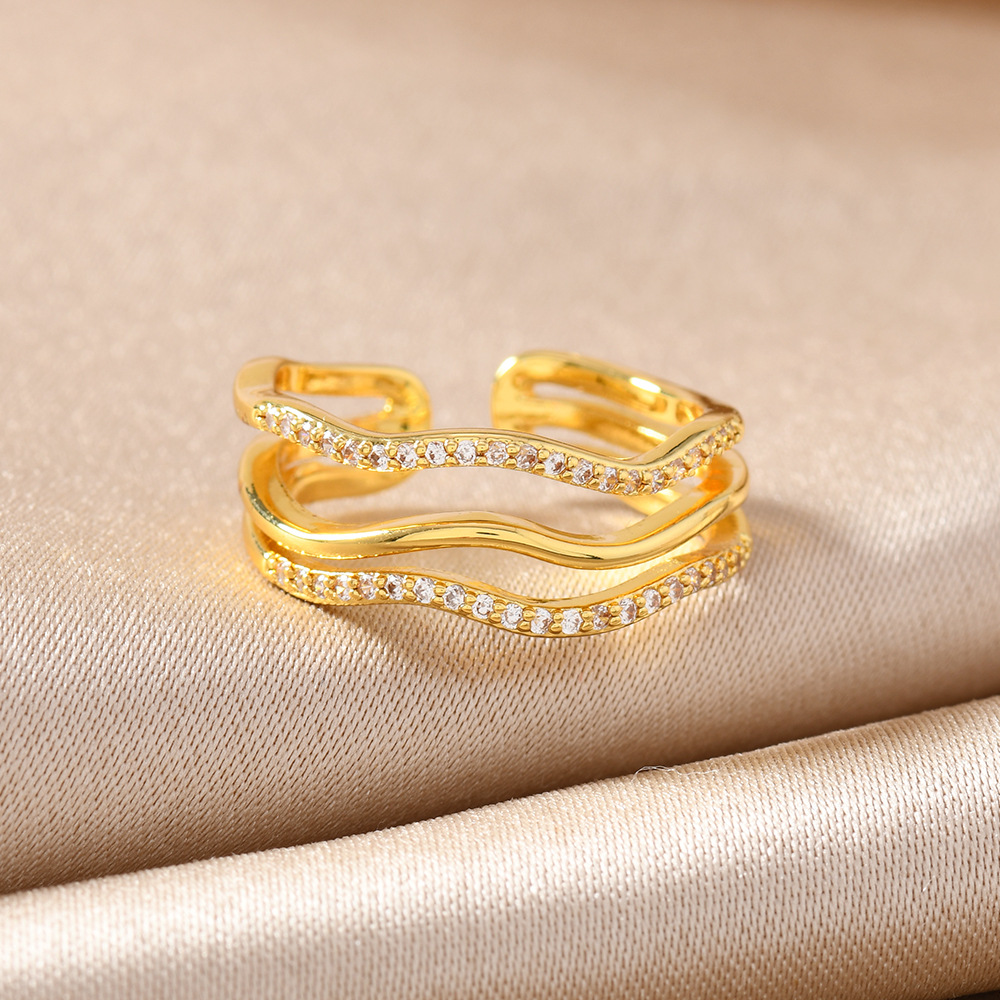 Goldiluxx Minimally Designed Zircon Wave Line Versatile Open Ring